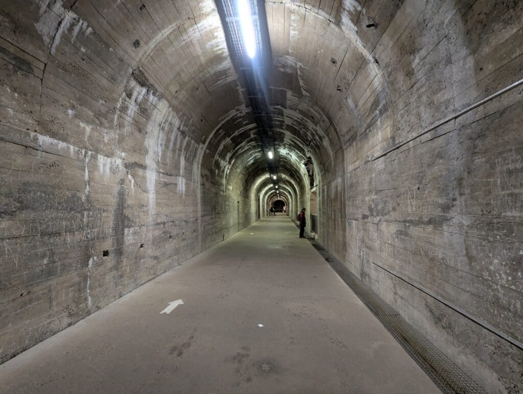 參觀是從火車隧道的入口進入,現在已經沒有火車鐵路了,另外因為已經經過了八十年,隧道中都開始有一些石灰鐘乳石的沉積。